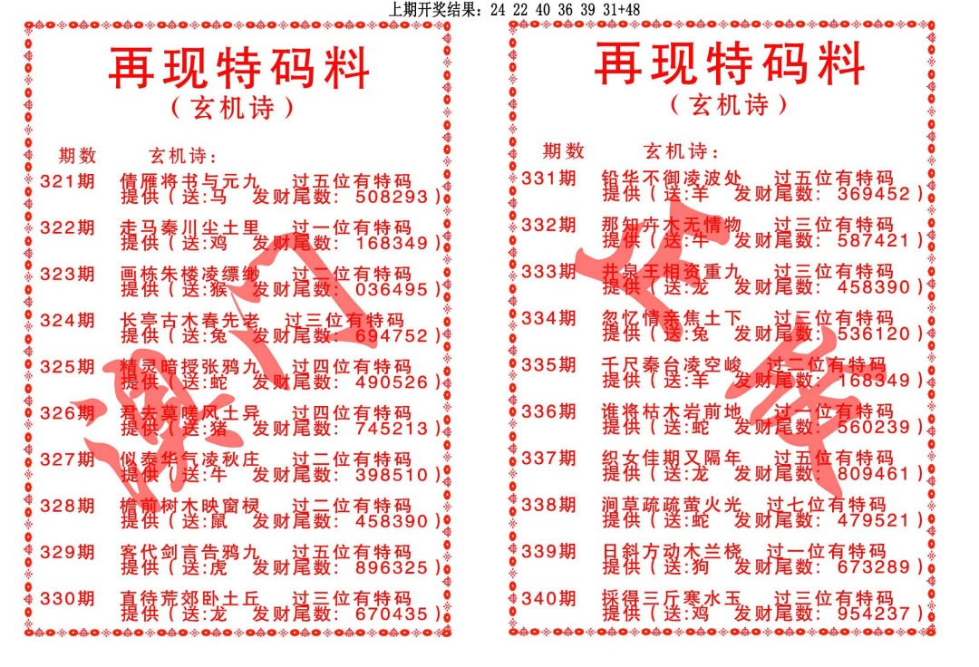 340期再现特码料[图]