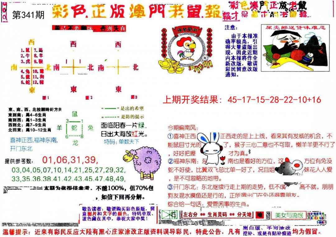 341期彩色正版澳门老鼠报[图]